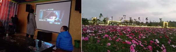 吃好,喝好后,員工們紛紛投入K歌、乒乓球等活動,或者徜徉在花海中,花香襲人,微風(fēng)輕拂,讓人心曠神怡,放松心情。